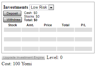 | Full Monopoly | $10,000,000, 3000 yomi | Hostile Takeover | +1 Trust, and increases Public Demand 10x (Todo) |